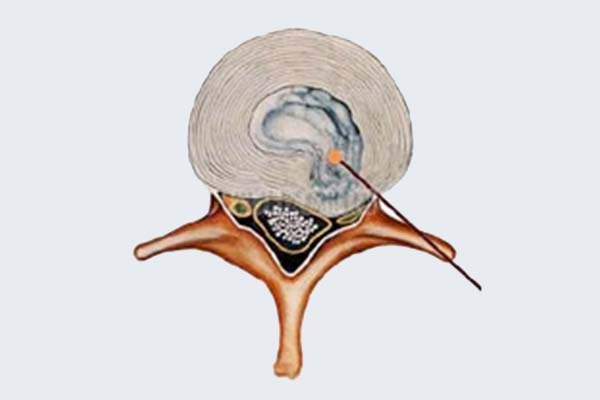 一般なPLDDは椎間板中央部にレーザーを照射しますが、当院ではレーザープローベを異常椎間板部に留置し、ヘルニアを効果的に治療します。この方法は繊細で難しいテクニックですが、当院では脊椎専門医である院長が全例行いますので正確に治療が行えます。